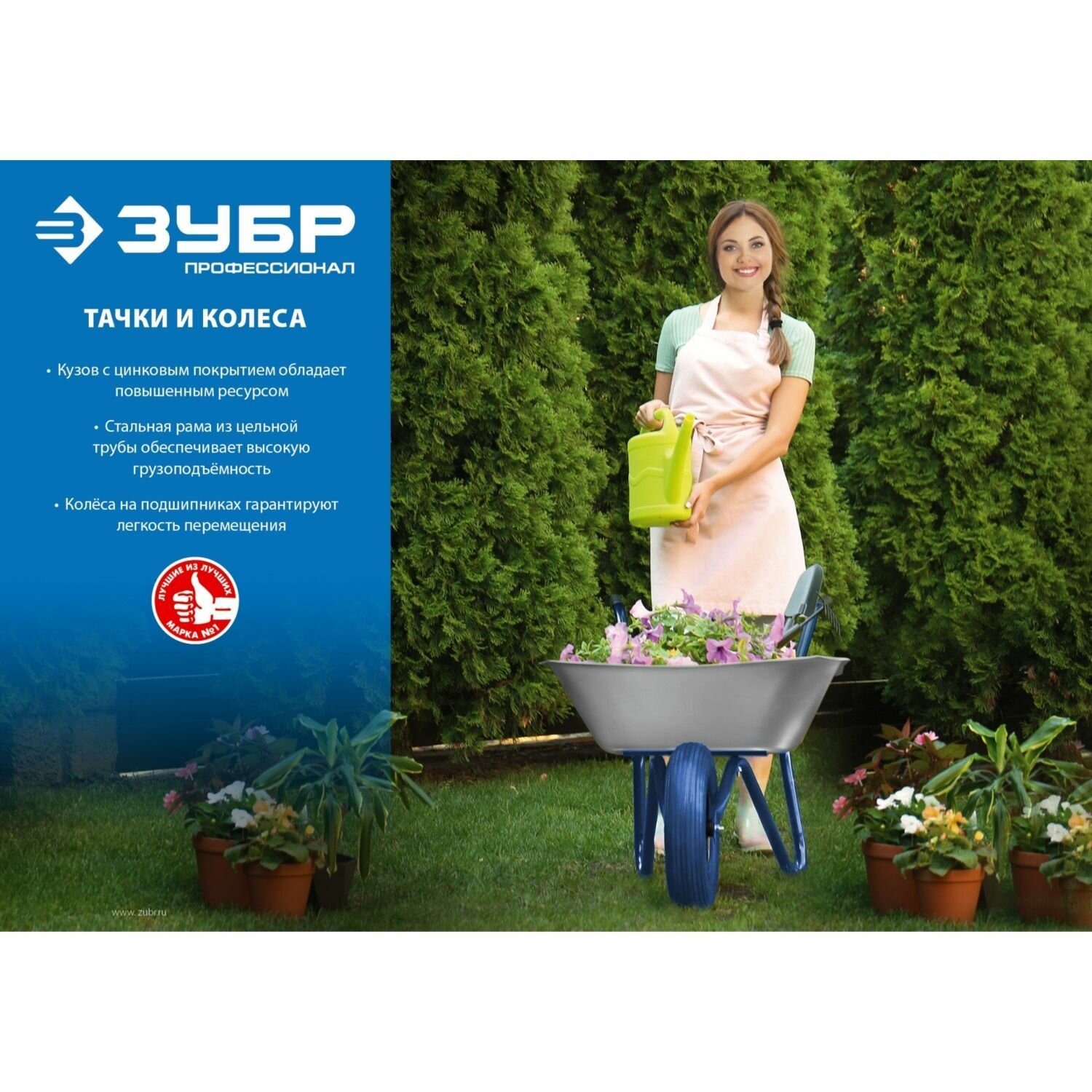 ЗУБР Усиленная тачка, строительная двухколесная, 39913