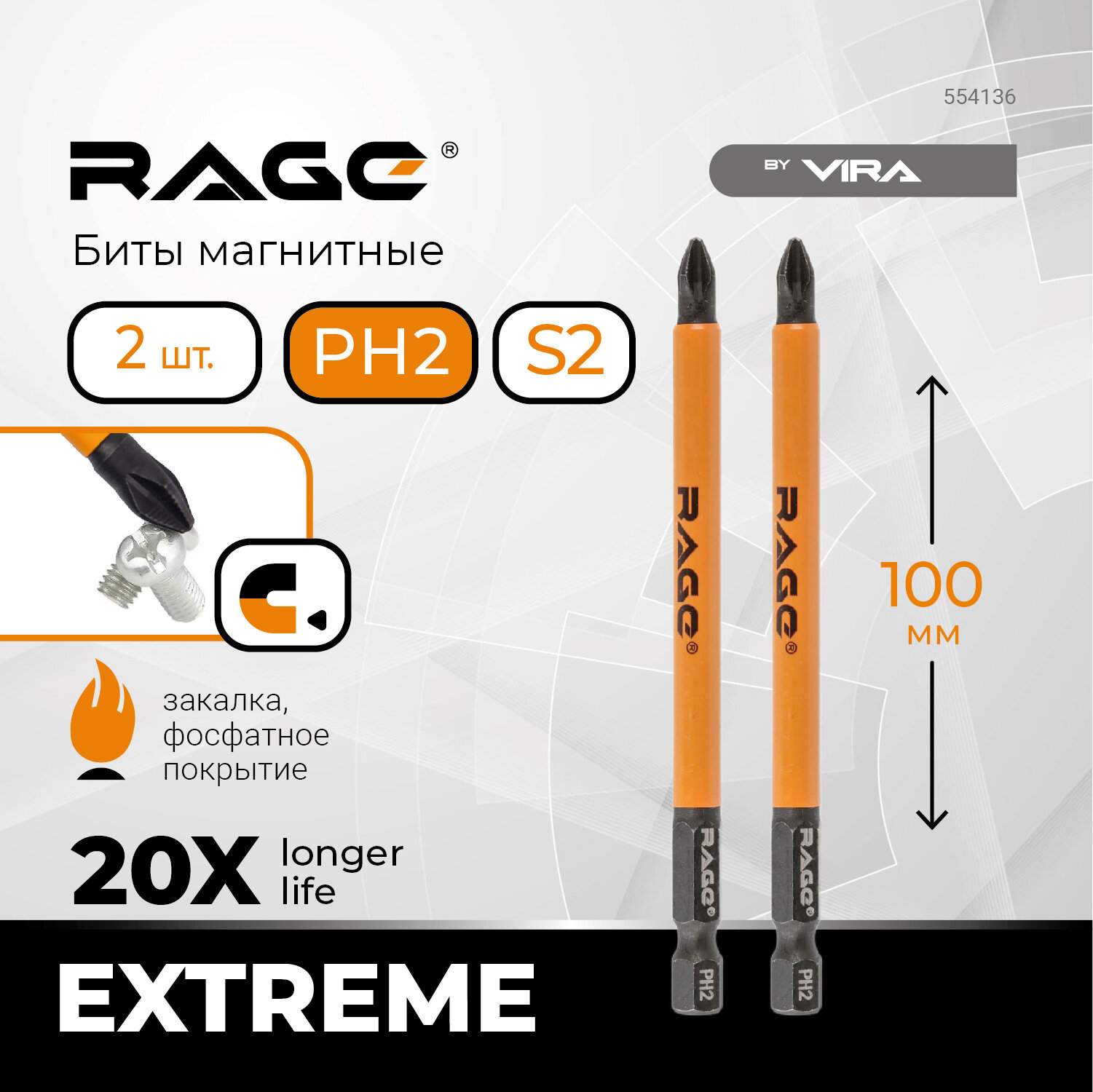 Биты магнитные PH2, 100 мм, 2 шт, s2 rage by VIRA 554136