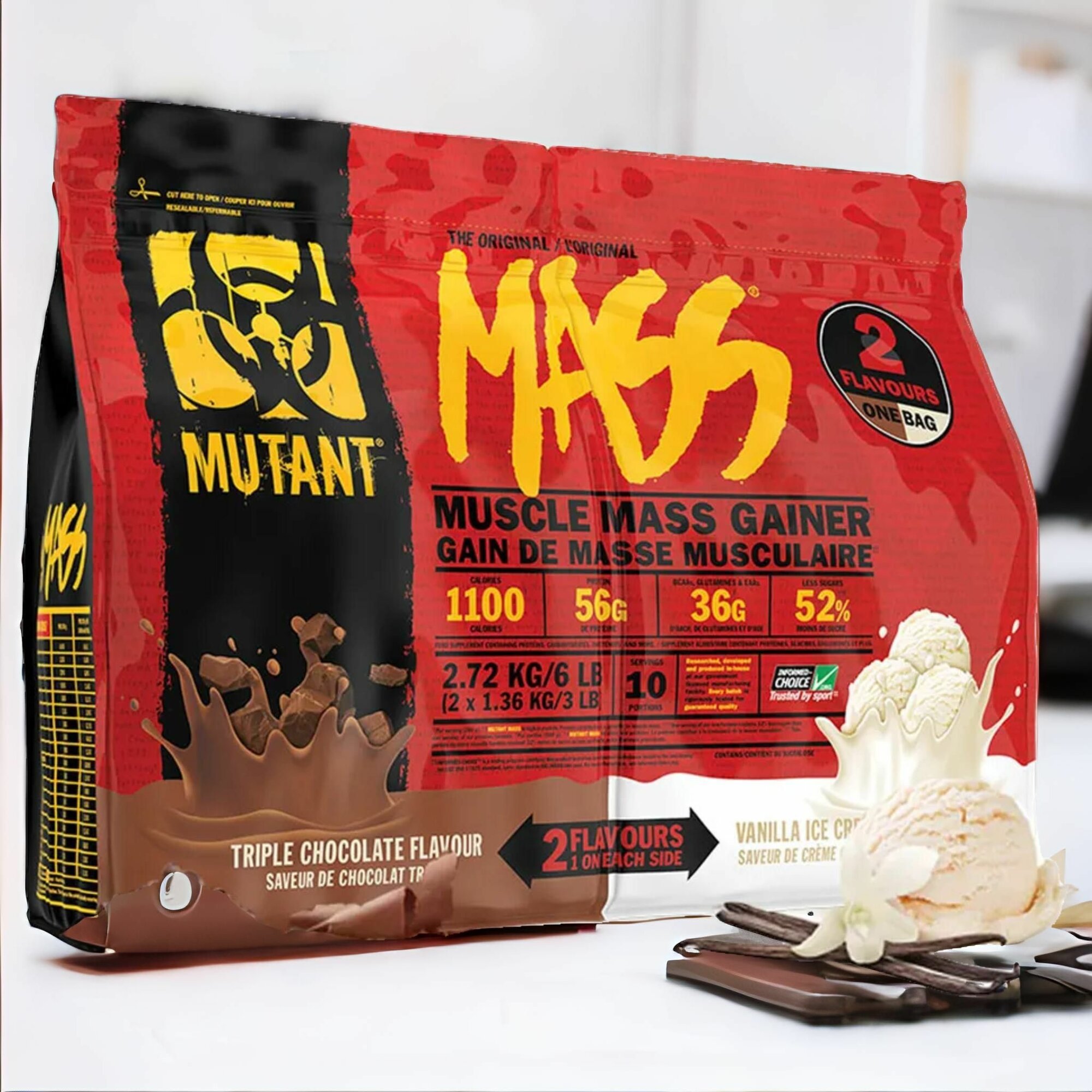 Купить Гейнер Mutant Mass 6 lb 2720 г, Тройной шоколад & Ванильное мороженное