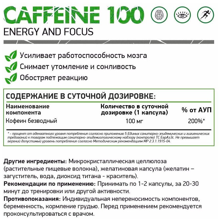 NATURALSUPP Caffeine Кофеин 100мг (60 капсул)