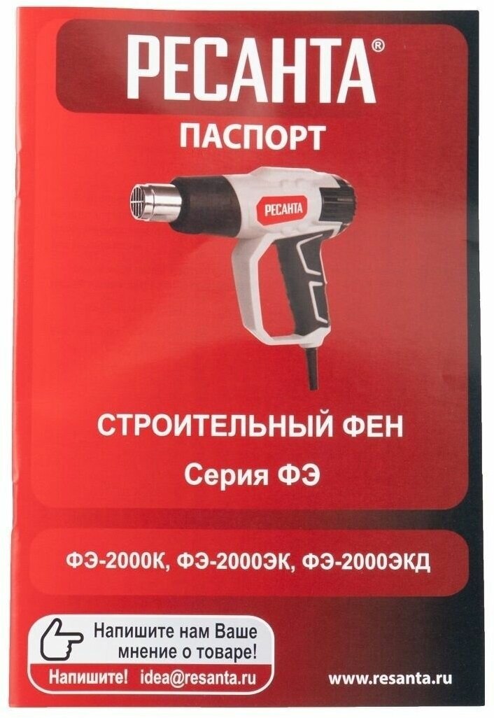СохранитьСтроительный фен ФЭ-2000ЭК Ресанта, , шт интересное: