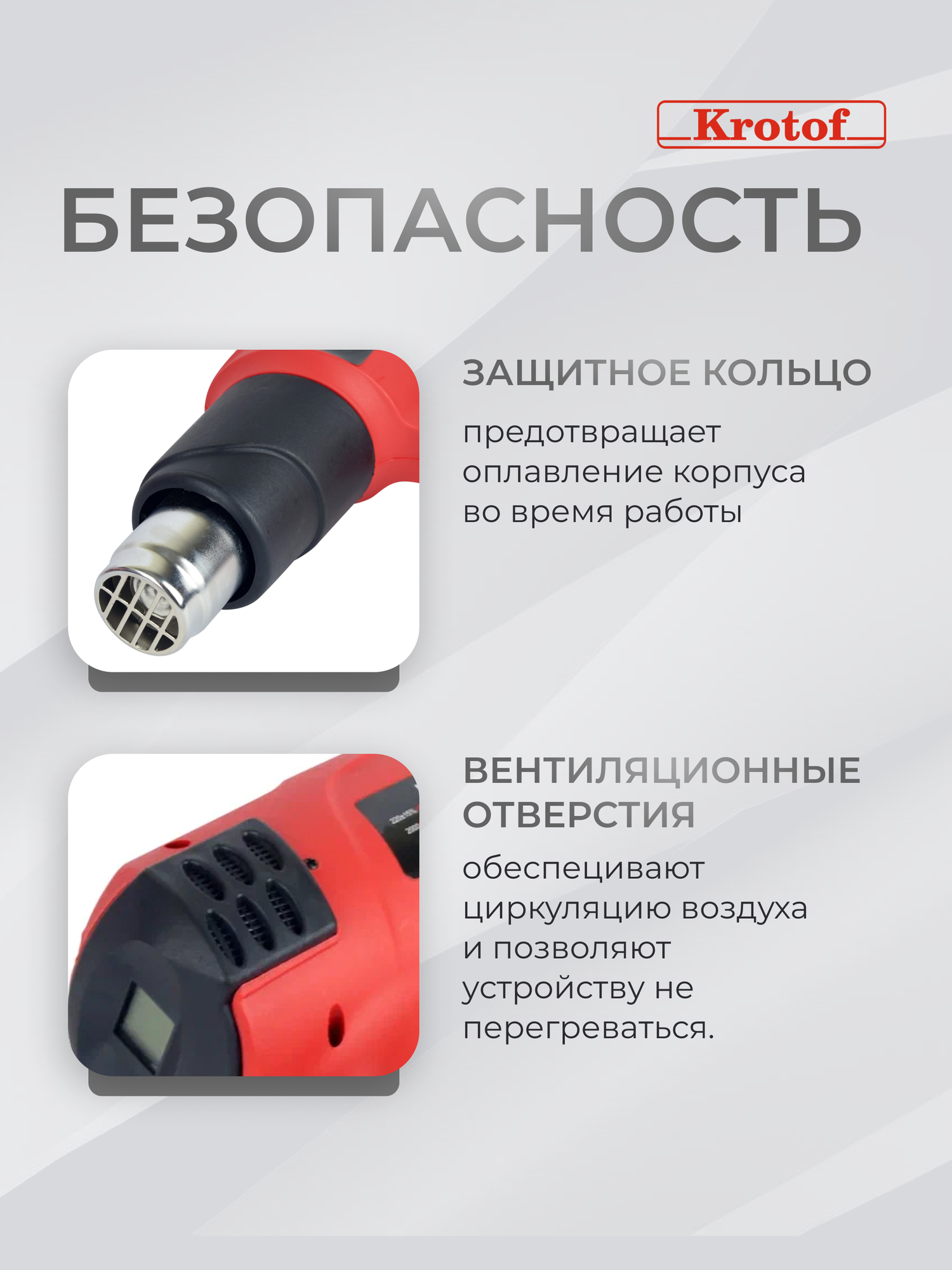 Фен строительный электрический Krotof HAG-6618, 2000 Вт, дисплей температуры / кротоф интересное: