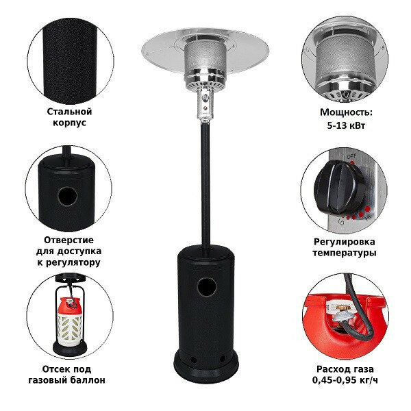 Уличный газовый обогреватель Aesto A-03T черный интересное: