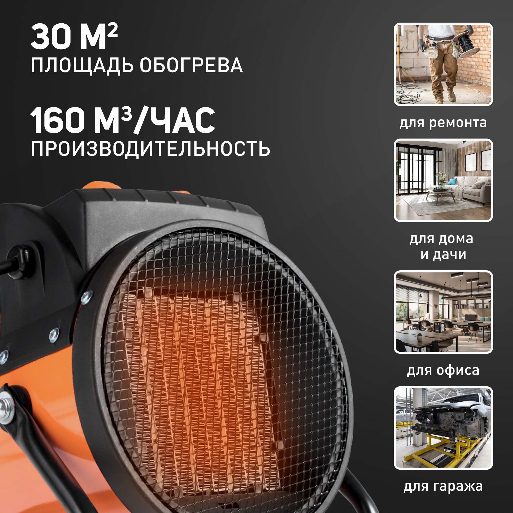 Тепловая пушка PTR 3S, электическая, 220 В, 2000 Вт, терморегулятор, керамика