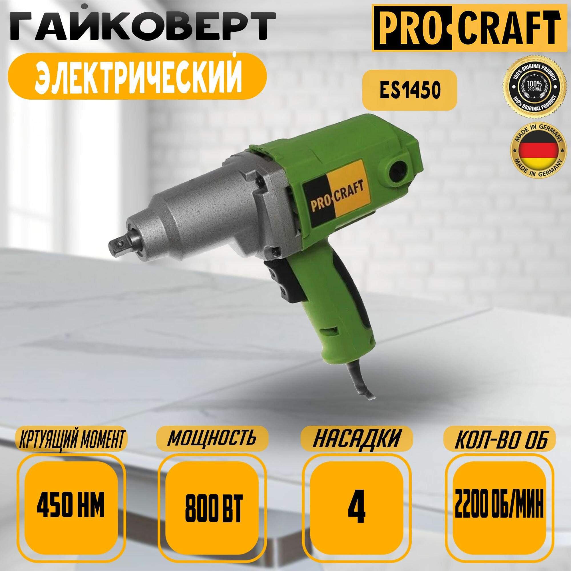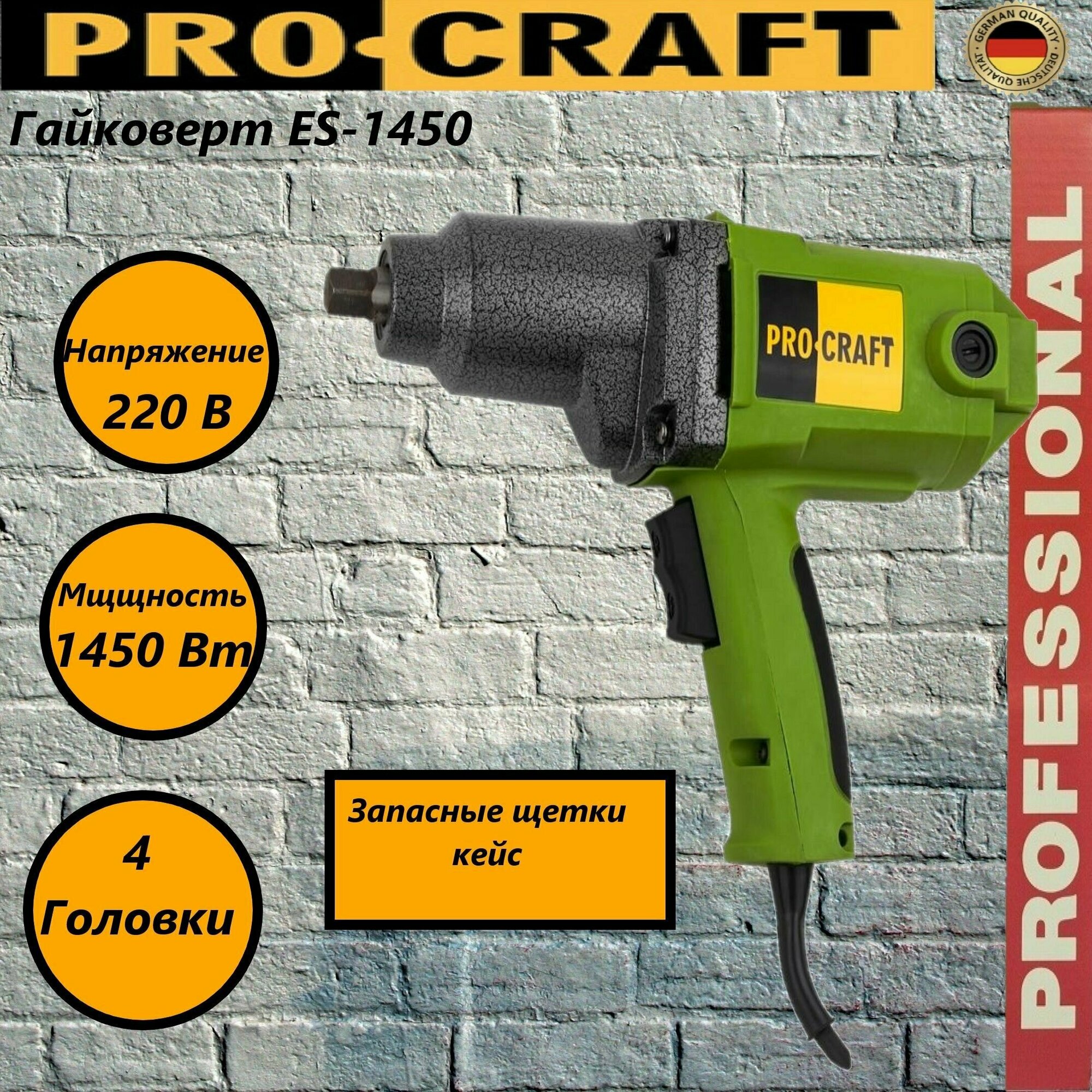 Гайковерт Procraft ES-1450, 1450 Вт, 2200 об/мин, 13 мм