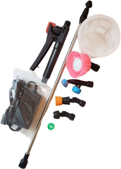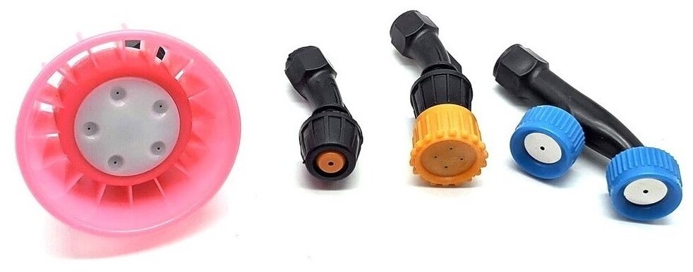 В комплекте идут несколько насадок и уплотняющих резинок. Бак тяжеловат из-за аккумулятора, но необязательно наливать целый бак,можно наполовину и тогда комфортно работать. |
