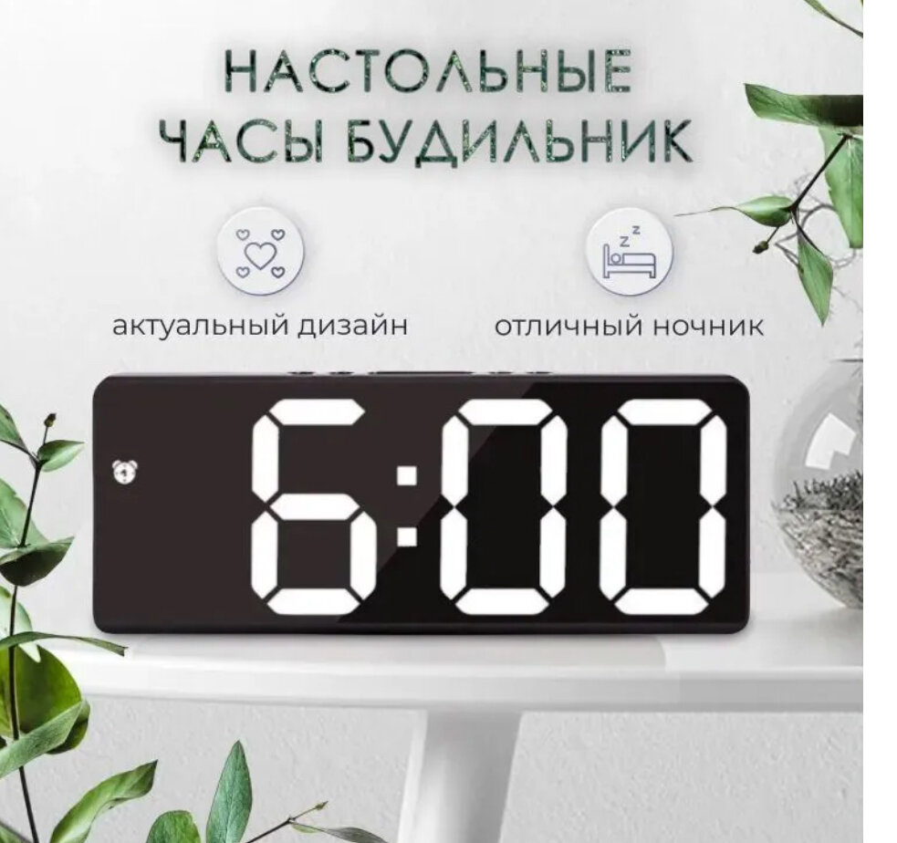 Часы электронные будильник с голосовым управлением / цифровые часы настольные белые цифры/ будильник / электронные часы