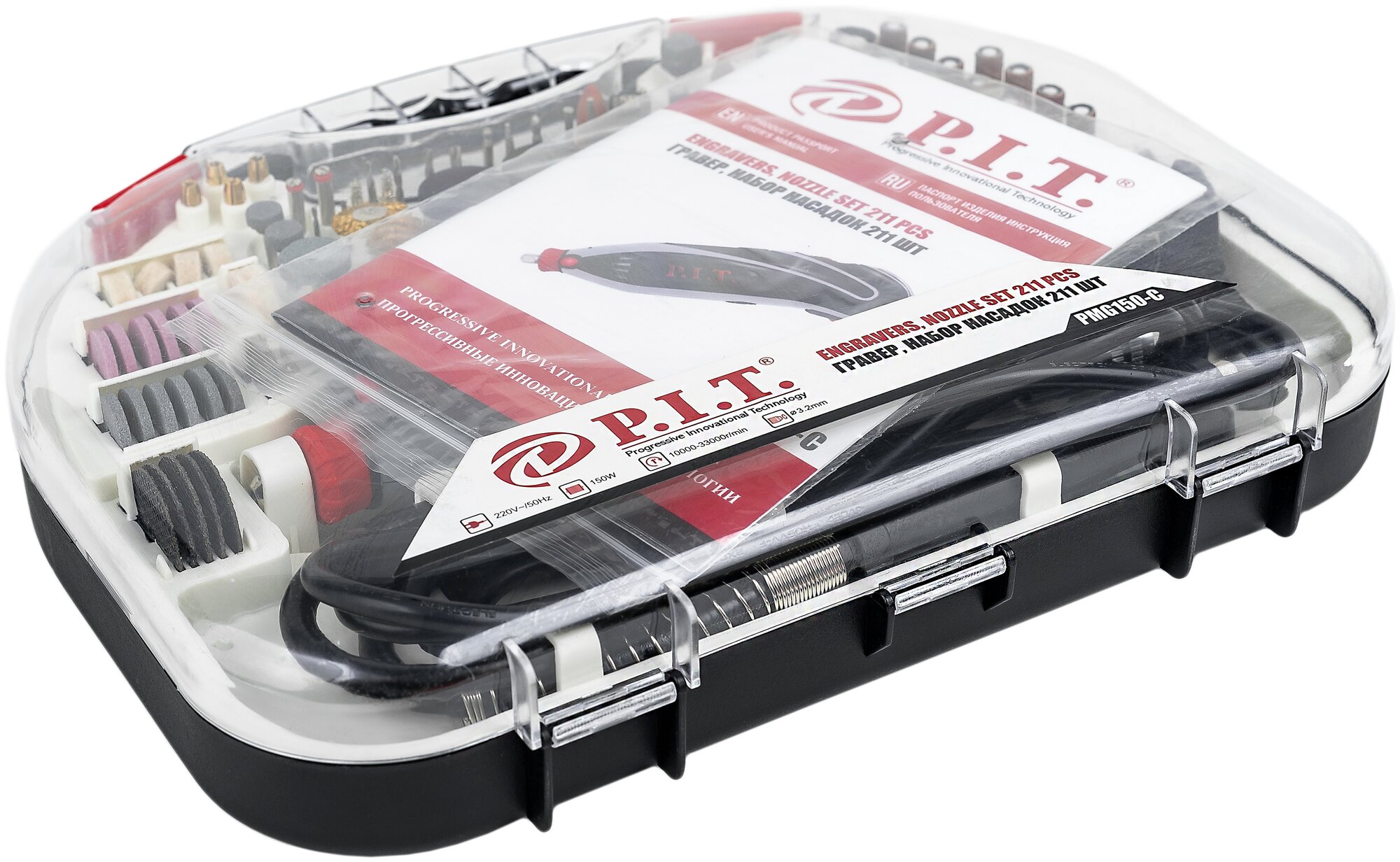 P.I.T. Гравер P.I.T. PMG150-С PRO, 150 Вт, гибкий вал, цанга 3.2 мм, 33000 об/мин, 211 предметов