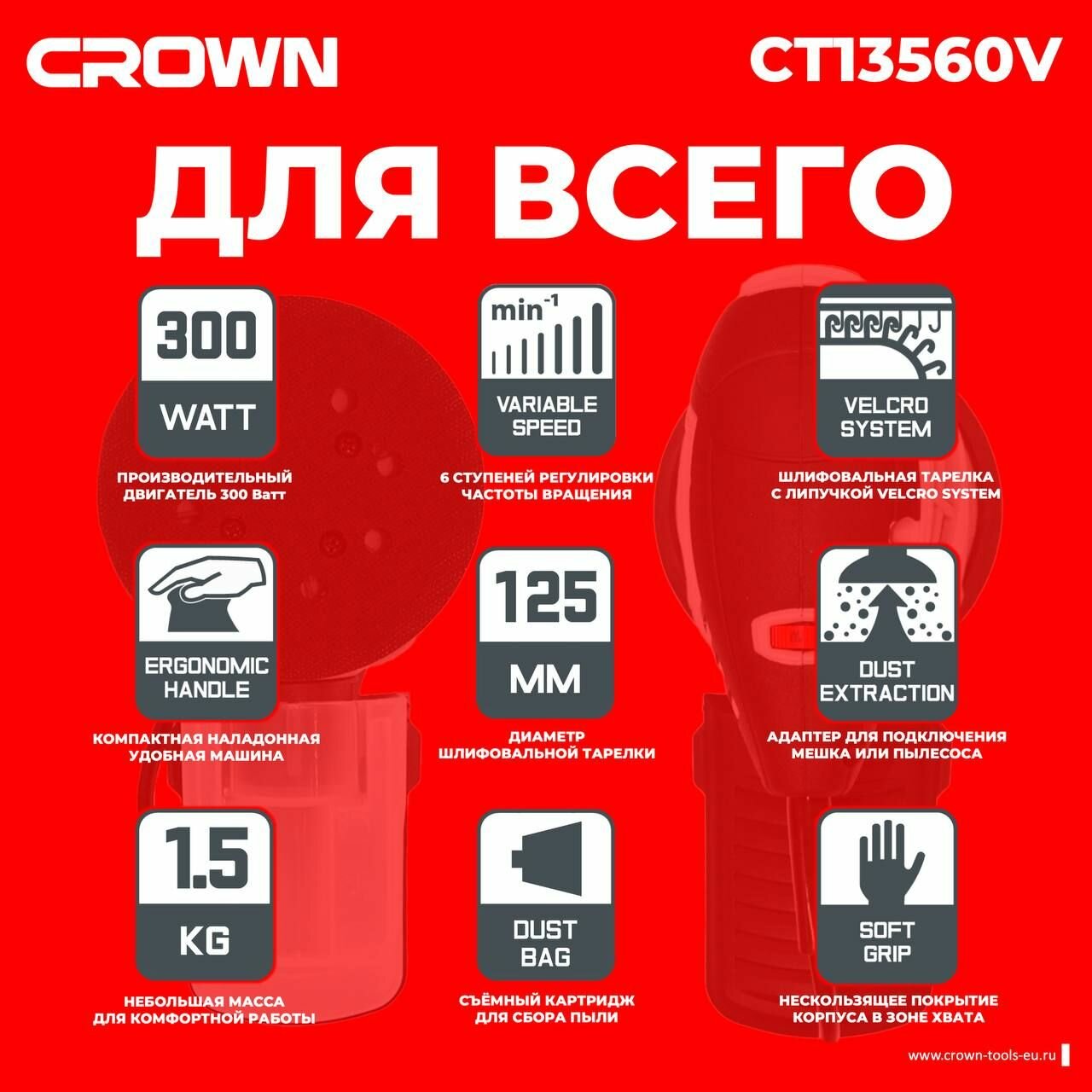 Эксцентриковая шлифмашина Crown CT13560V (300 Вт, 125 мм)