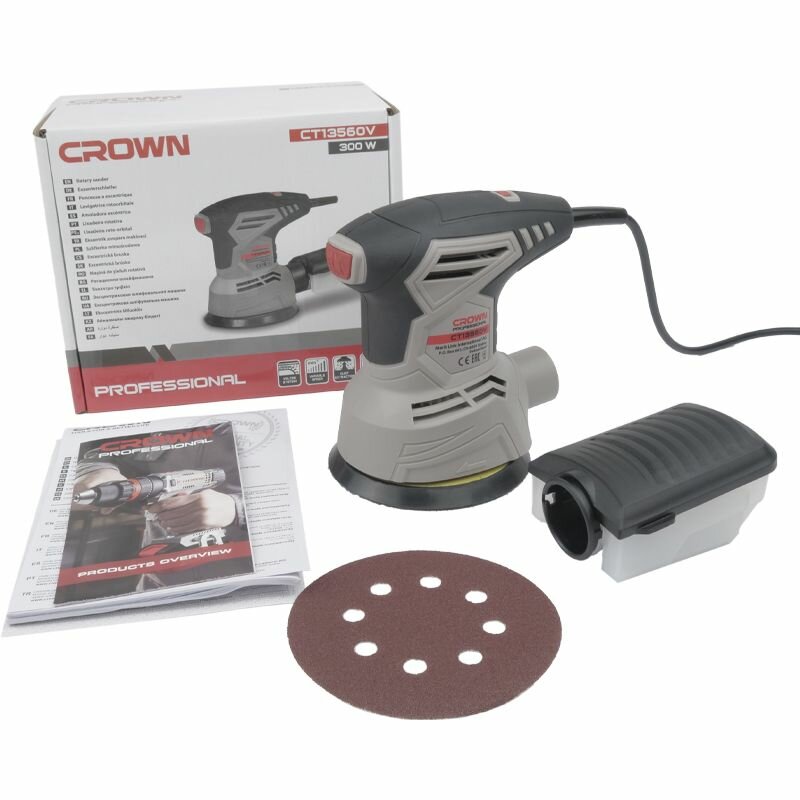 | Комплектация | эксцентриковая шлифовальная машина CROWN CT13560V, инструкция по эксплуатации, пылесборный мешок, 3 шлифовальных бумаги |