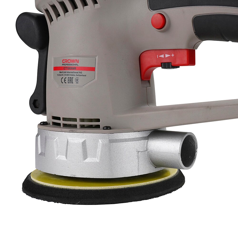 Шлифовальная машинка эксцентриковая 150 мм CROWN CT13395, 450Вт, Орбитальная ход 2мм, регулировка 4000-13000 об/мин.