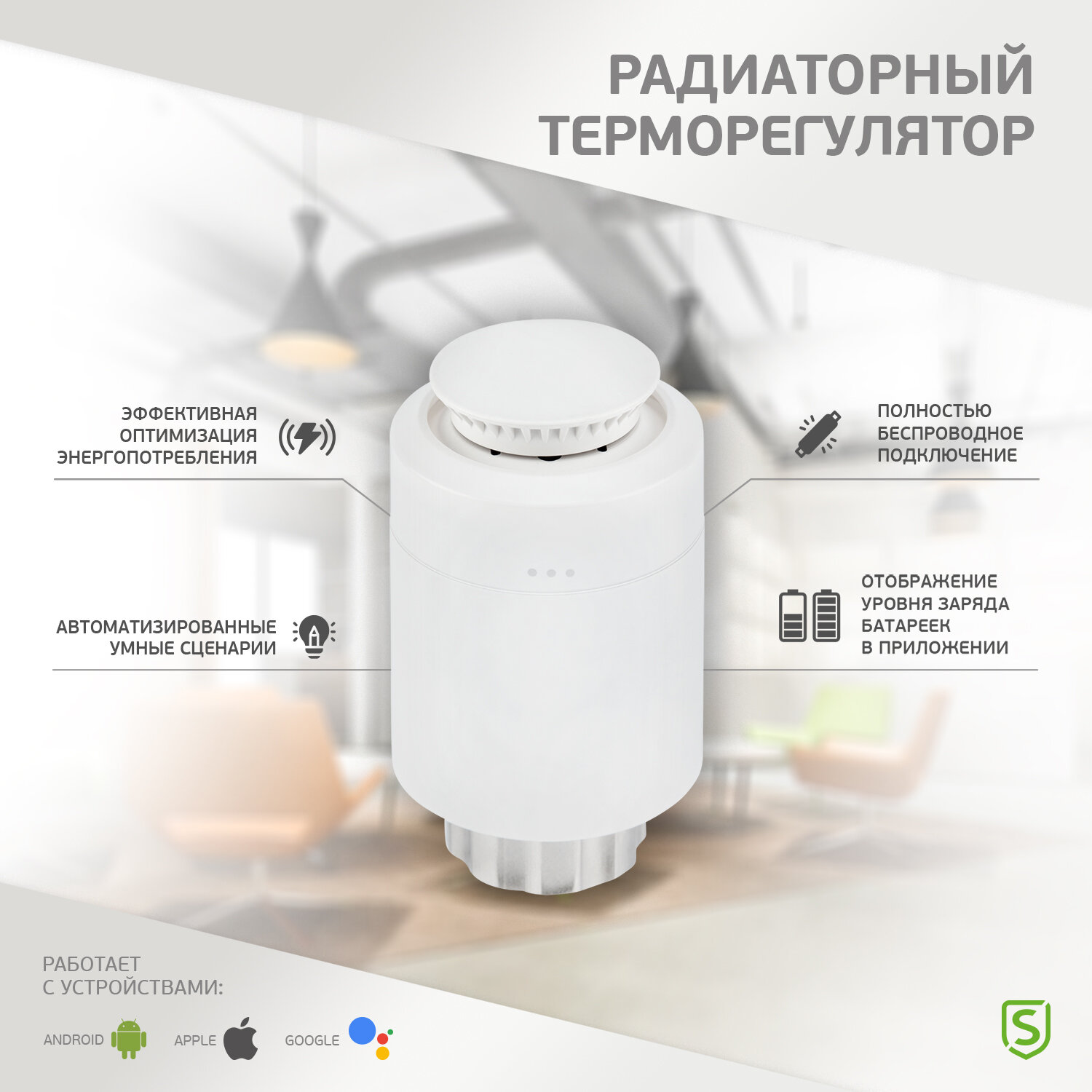 Терморегулятор радиаторный SECURIC, ZigBee, беспроводной, накладной, белый