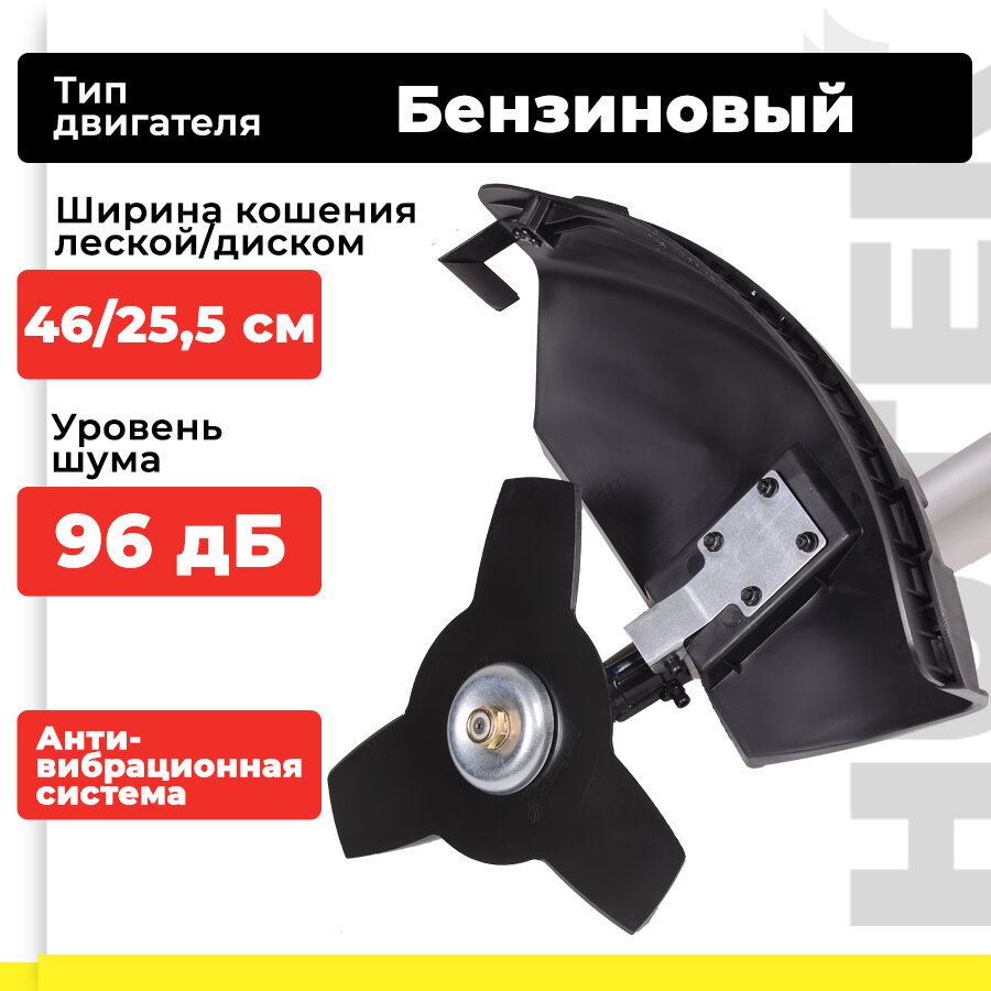 | Особенности | ширина скашивания ножом 25.5 см, леской - 46 см; тип режущего ножа 3T |