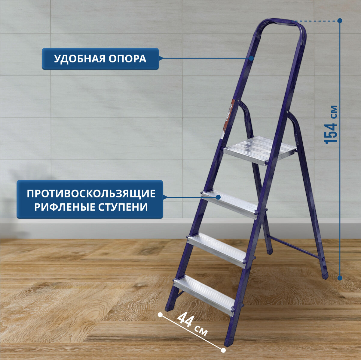 | Дополнительная информация | ширина 44 см; профиль передней дуги 40 х 20 мм, профиль задней ноги 30 х 20 мм; материал профиля: сталь окрашенная эпоксидной порошковой эмалью; материал площадки: оцинкованная сталь; материал ступеней: алюминий; на ножках пластиковые накладки |