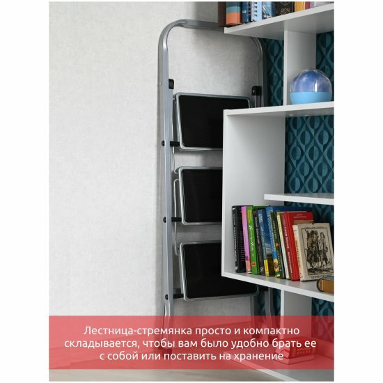 | Плюсы: | Отличная лесенка. Очень удобно доставать с верхних полок на кухне и в комнатах т. к. потолки 3м.Много места не занимает. |