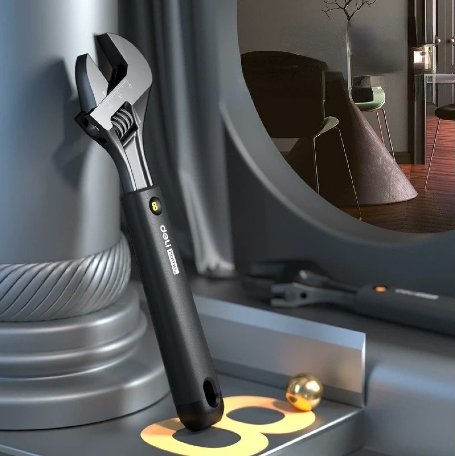 Ключи Deli Разводной ключ «Home Series Black" Deli HT1508 200мм, эксклюзивный дизайн, рукоятка из высококачественного софттач пластика