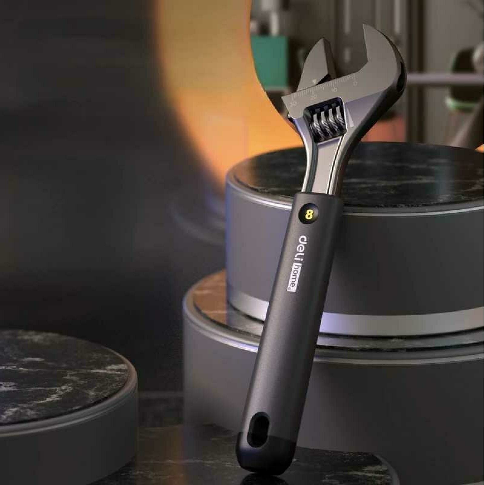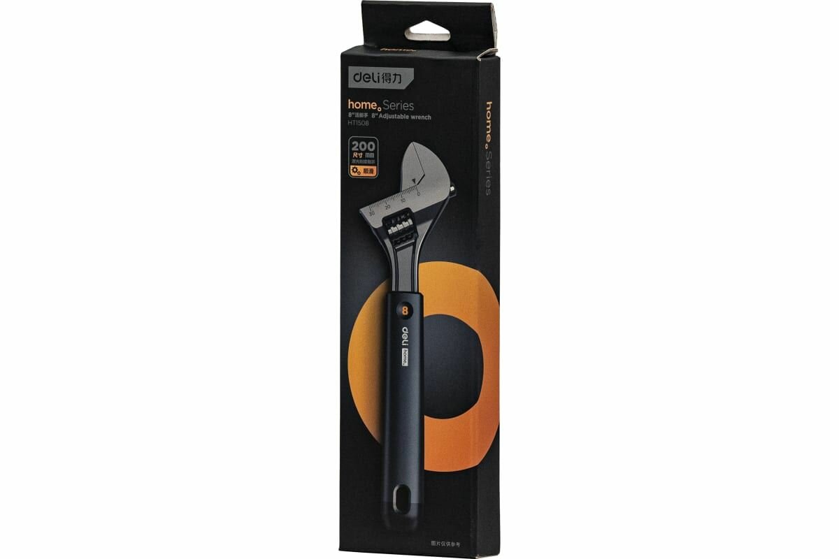 Разводной ключ "Home Series Black" Deli HT1508 200мм (Эксклюзивный дизайн, рукоять из софттач пластика, лазерная гравировка шкалы,подарочная упаковка)