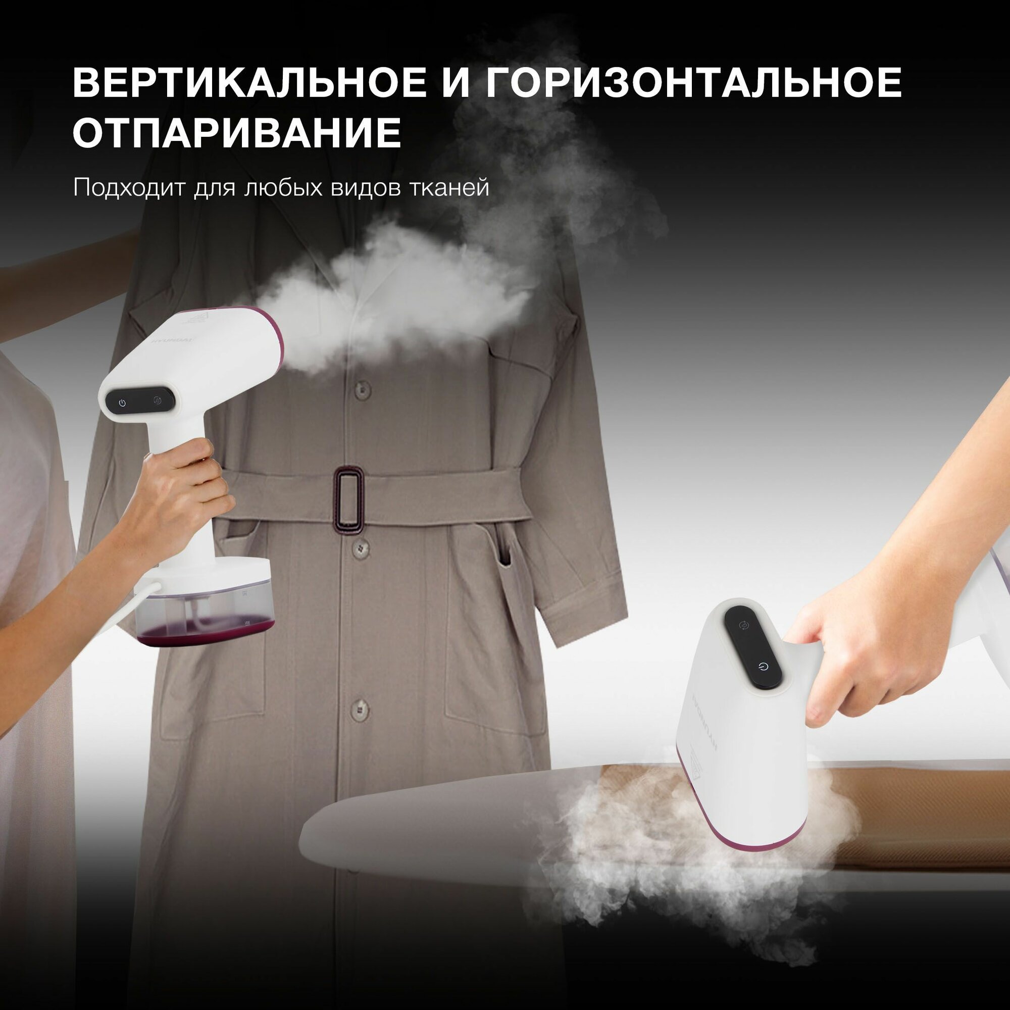 Отпариватель ручной Hyundai H-HS02890 1650 Вт, подача пара 30 г/мин, вертикальное отпаривание, съемный резервуар 300мл