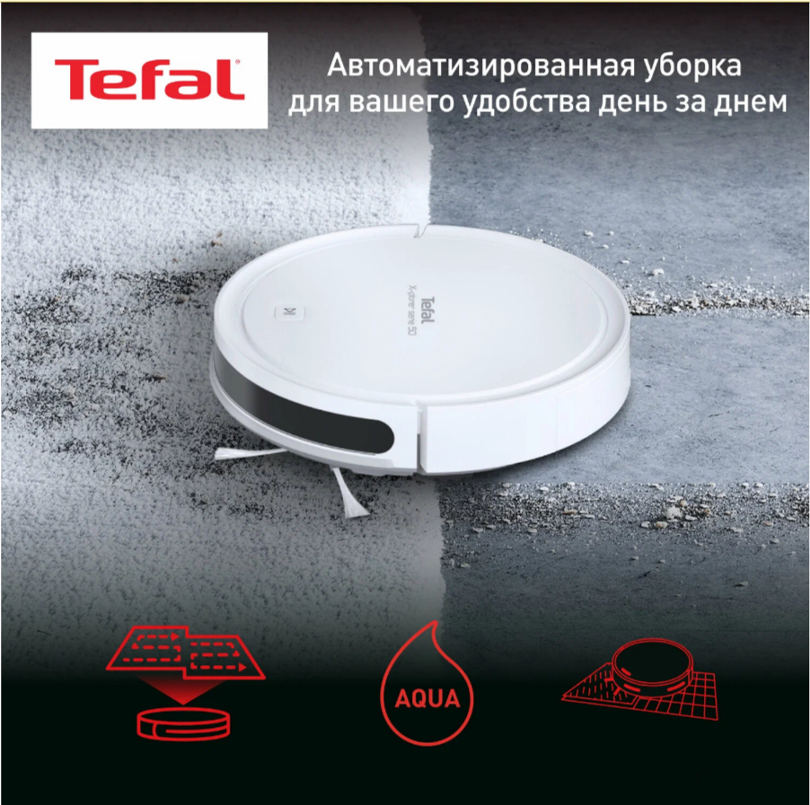 Робот-пылесос 4в1 Tefal X-plorer Serie 50 RG7387WH работает с Алисой, с сухой и влажной уборкой до 2 ч, белый