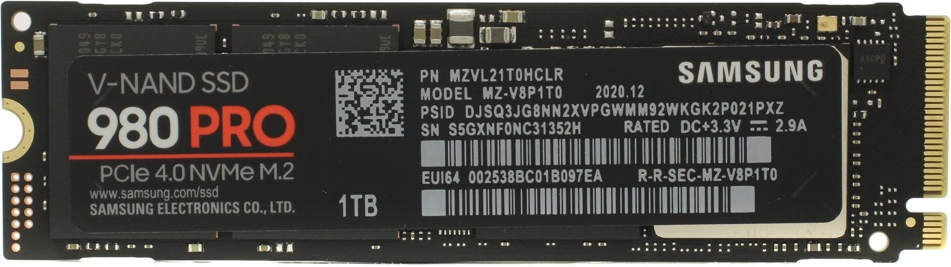 SSD накопитель Samsung 980 PRO MZ-V8P1T0BW, 1Тб, PCIe, V-NAND, игровой