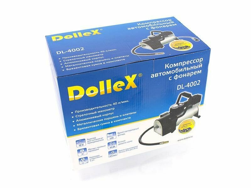 Компрессор DOLLEX 12V, 14 A, 10 Атм, 40 л / мин, предохр-ль, фонарь, сумка, DL4002 DOLLEX DL-4002