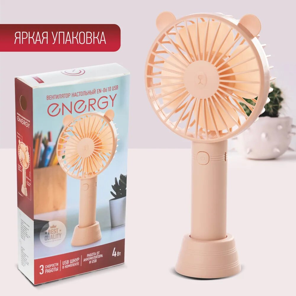Вентилятор настольный Energy EN-0610, USB, аккумуляторный, 4 Вт, 3 скорости, розовый