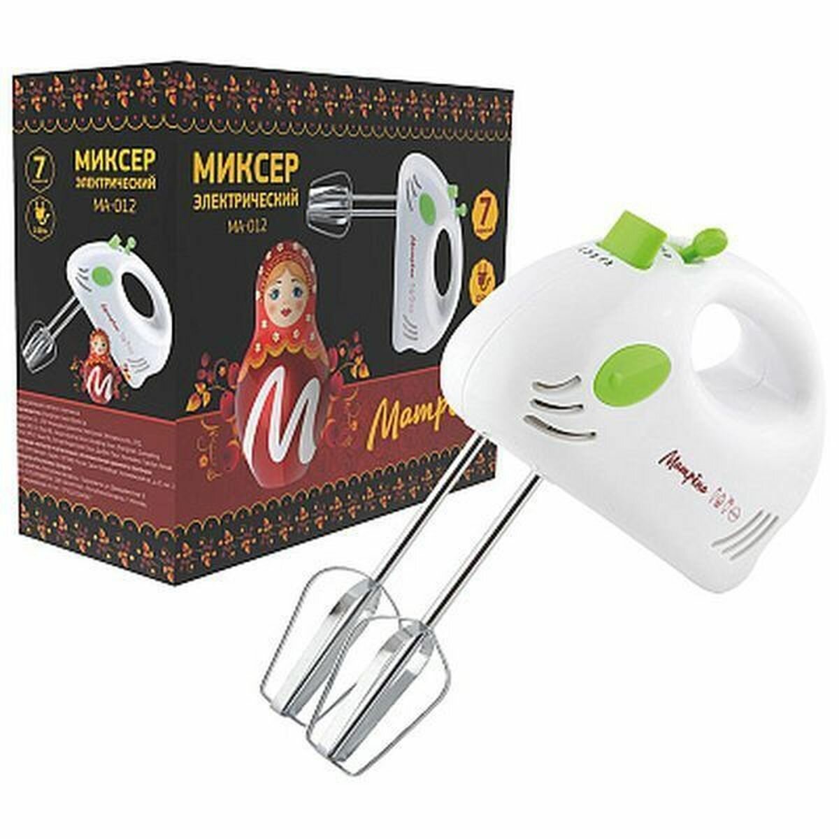 Миксеры Матрёна Миксер "Матрёна" MA-012, ручной, 150 Вт, 7 скоростей, 2 насадки, бело-зелёный