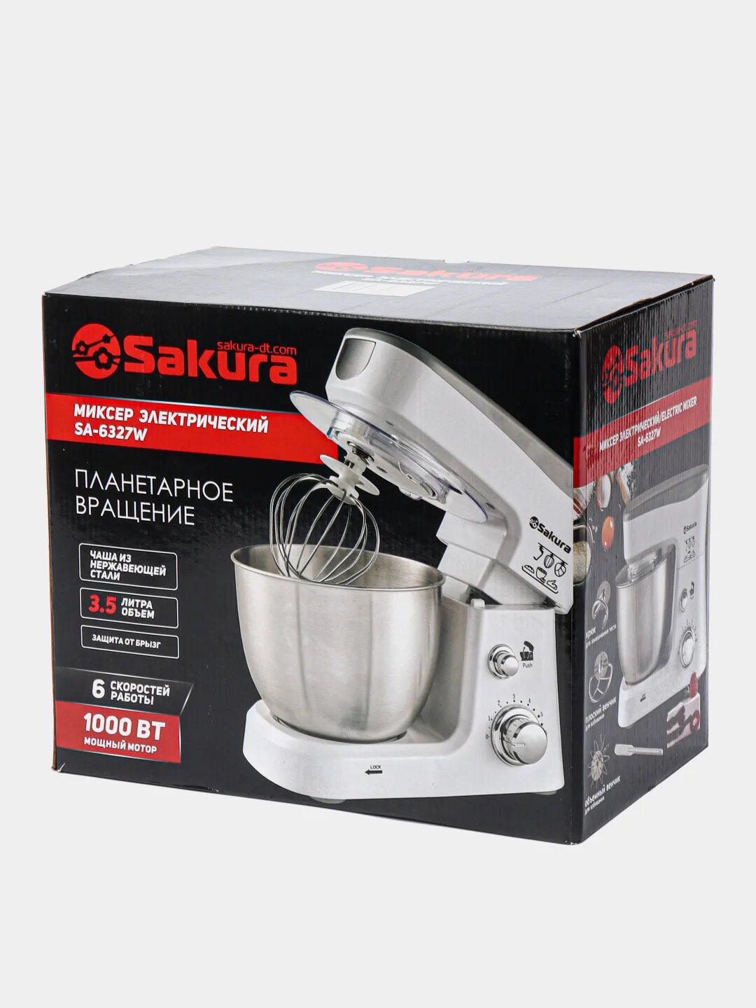 Купить миксер SAKURA SA-6327W планетарный 1000Вт 3,5л 6скор