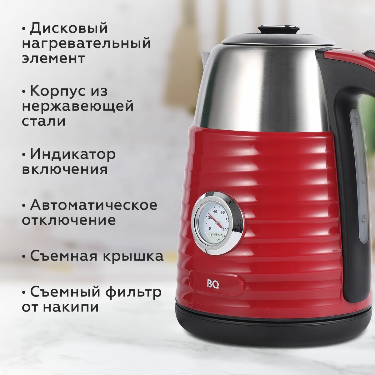 Купить чайник электрический BQ KT1723SW Сталь-Красный
