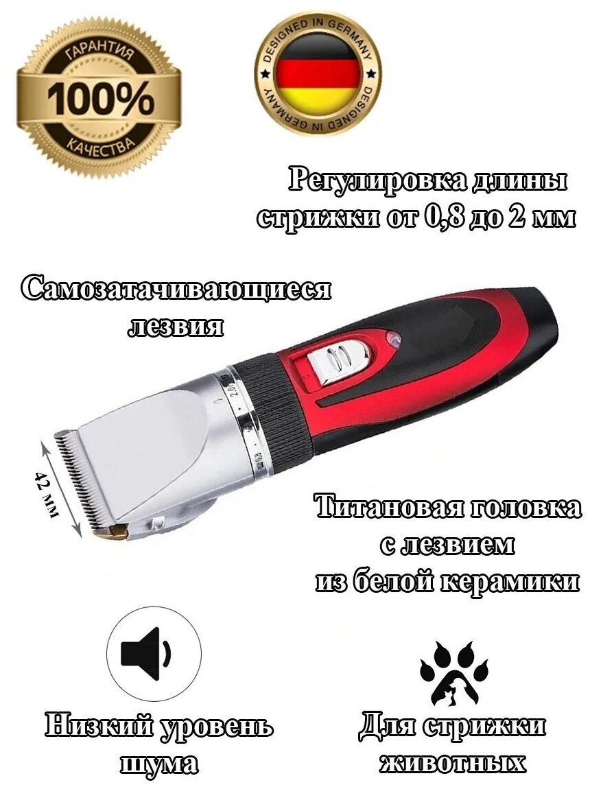 Cronier cr-2155 Машинка для стрижки животных беспроводная ,цвет красный