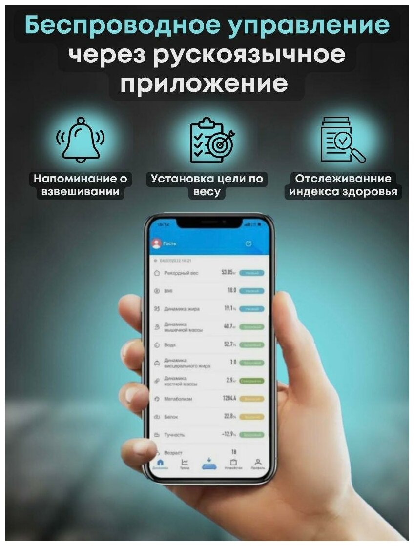 | Отзыв: | В приложении показывает все показатели, взвешиваемся всей семьёй ! |