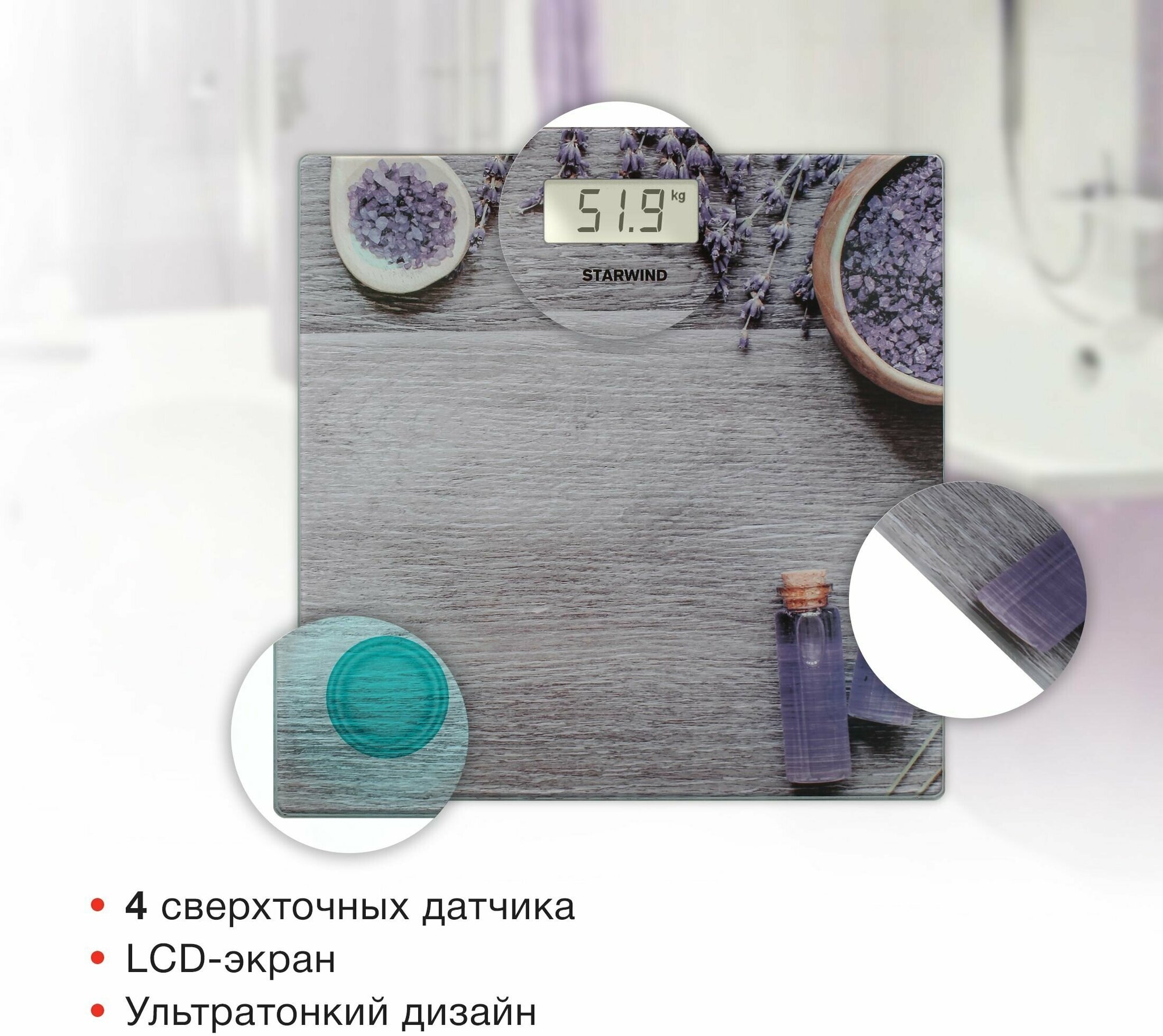 Напольные весы STARWIND SSP6031, до 180кг, цвет: рисунок/фиолетовый интересное: