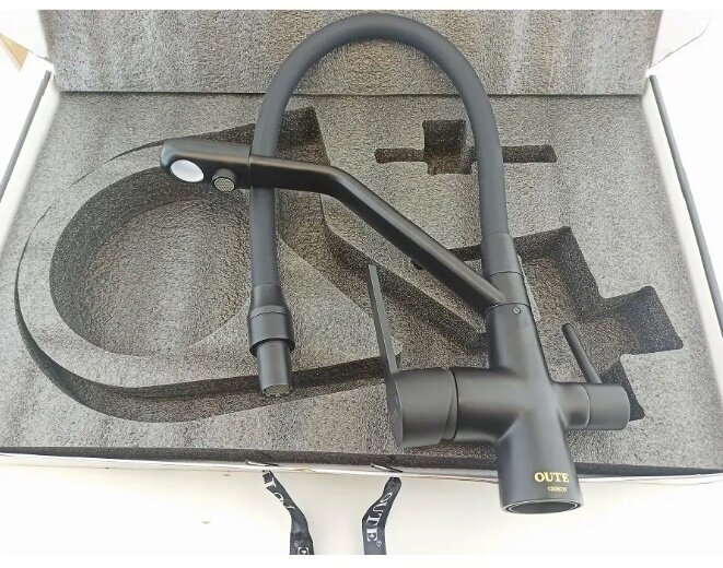 Смеситель для кухни с гибким изливом, переключателем и с фильтром, цвет матовый OUTE T603BK OUTE