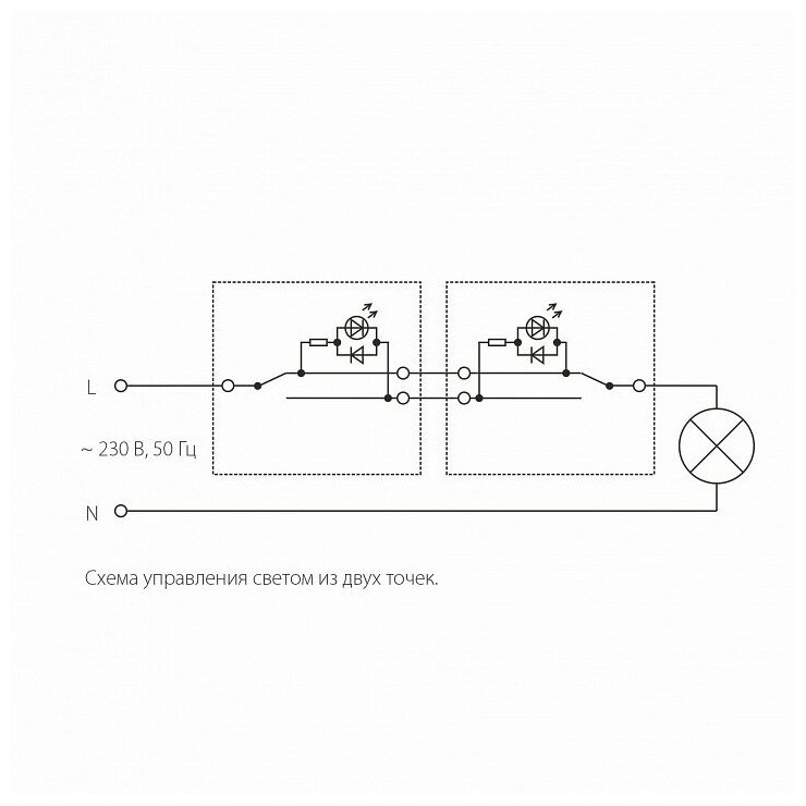 | Схема подключения выключателя | выключатель 1-полюсный |