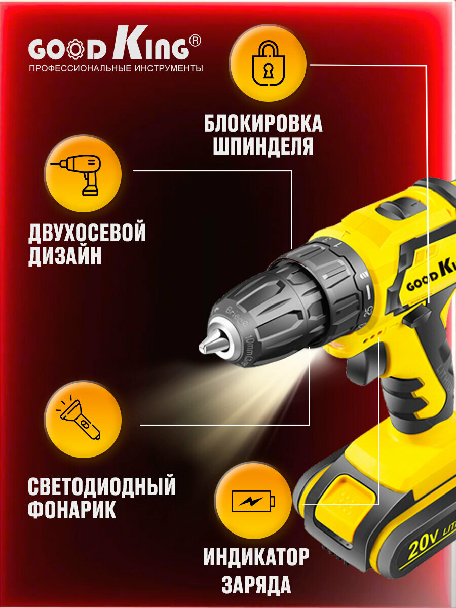Дрель-шуруповерт аккумуляторная Goodking YL-102001 20V