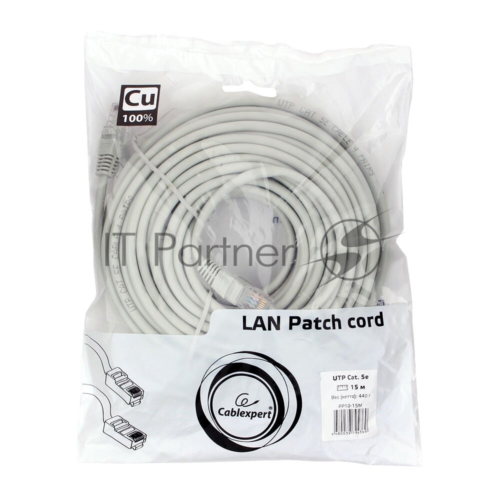 Патч-корд UTP CAT5e медный 15м Cablexpert PP10-15M RJ-45 кабель - серый