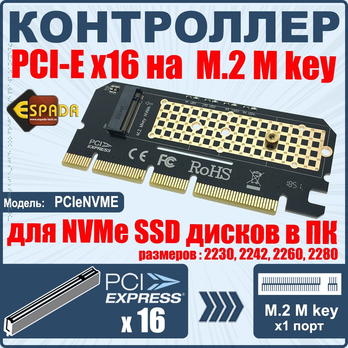 Адаптер PCI-E, M2 NVME, PCIeNVME, Espada