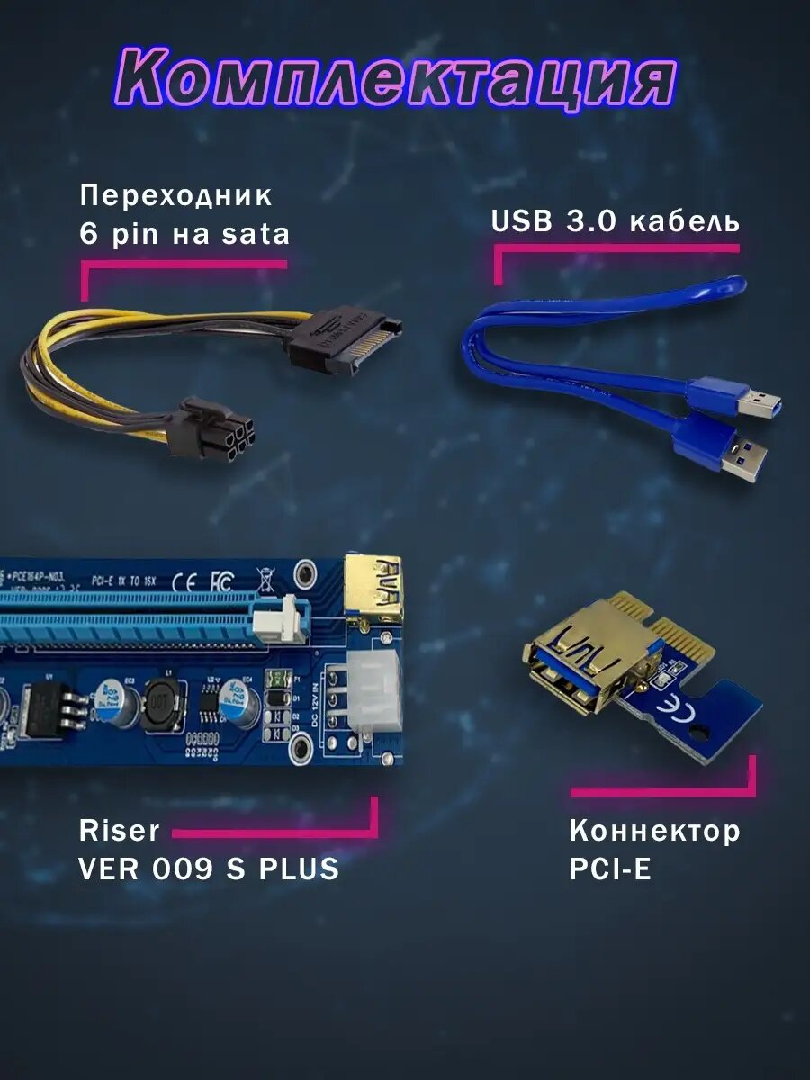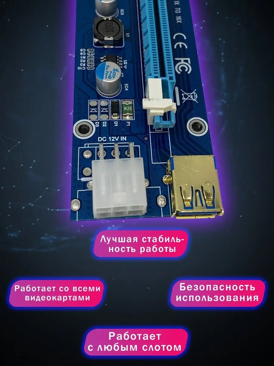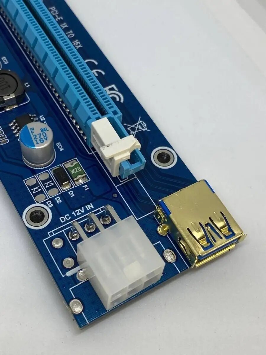 USB Riser card PCI-E x1 Male to PCI-E x16 Female с питанием 6Pin, EpciEkit (ver 009S), Espada