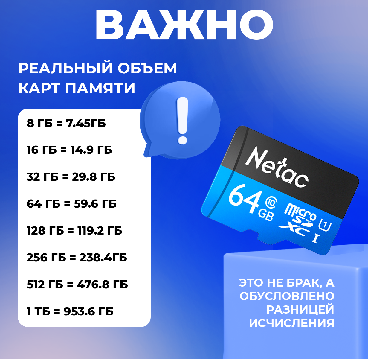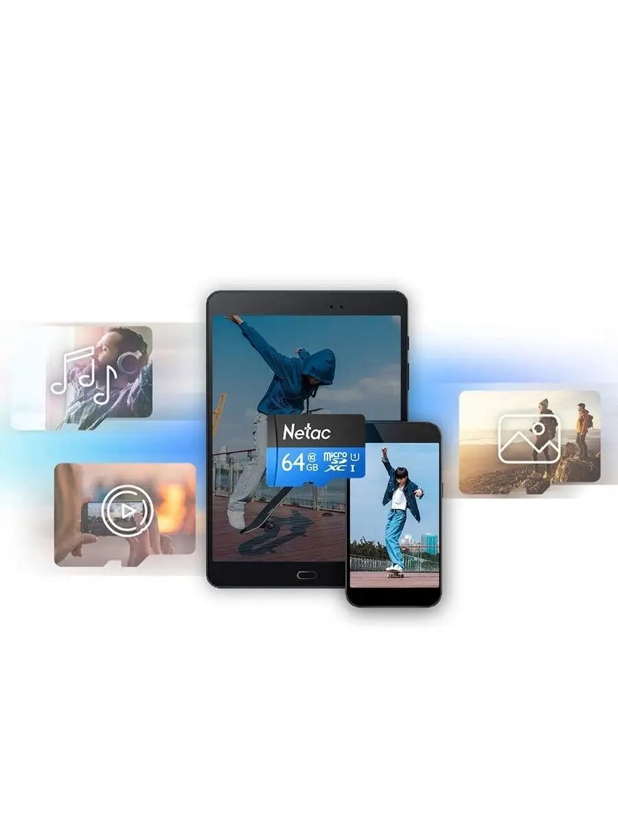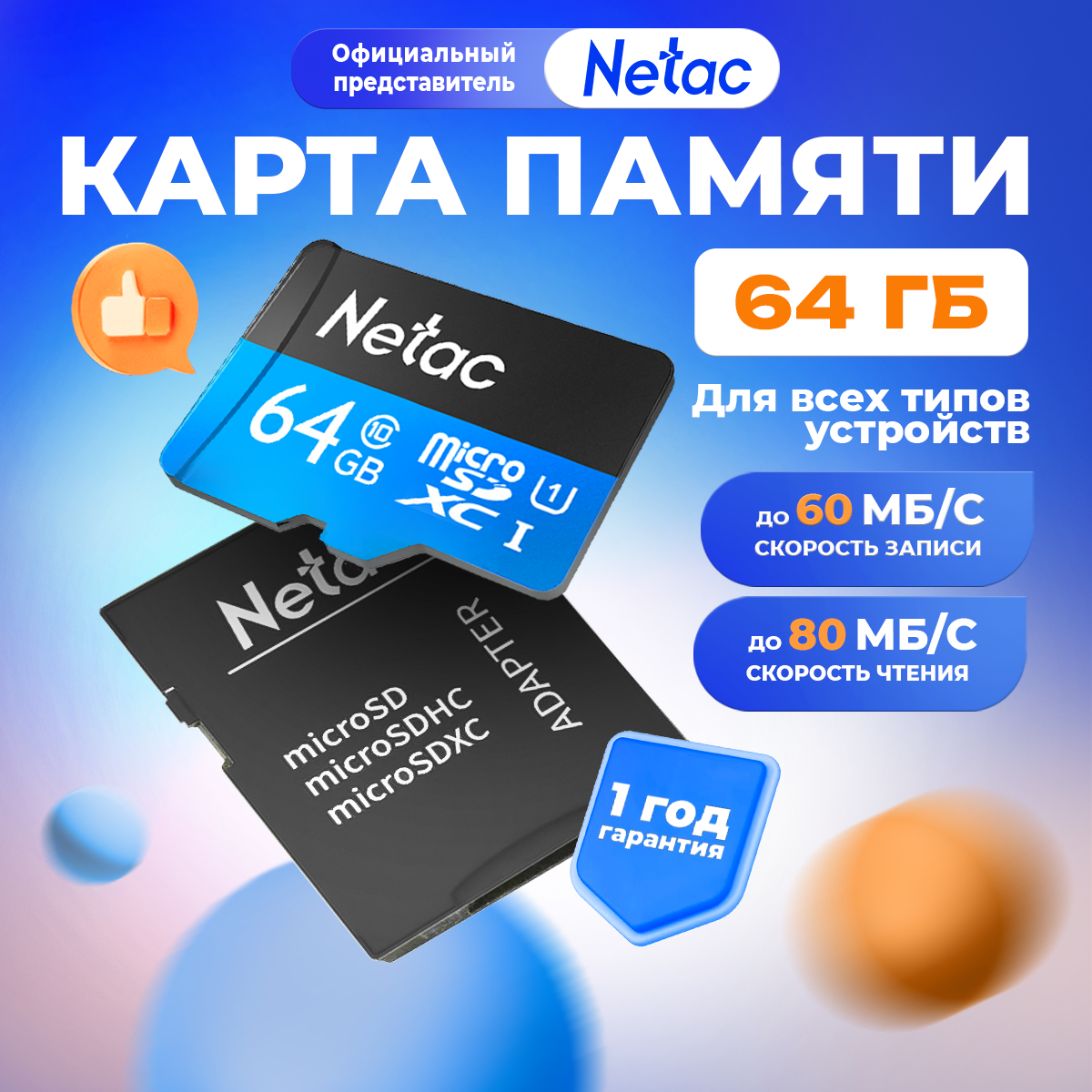 Карта памяти Netac microSD 64 ГБ Class 10, V10, A1, UHS Class 1, R 80 МБ/с, 1 шт., черный/синий