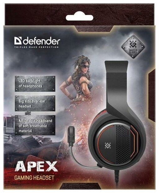 Игровая гарнитура Defender Apex черный+красный, кабель 1.8м