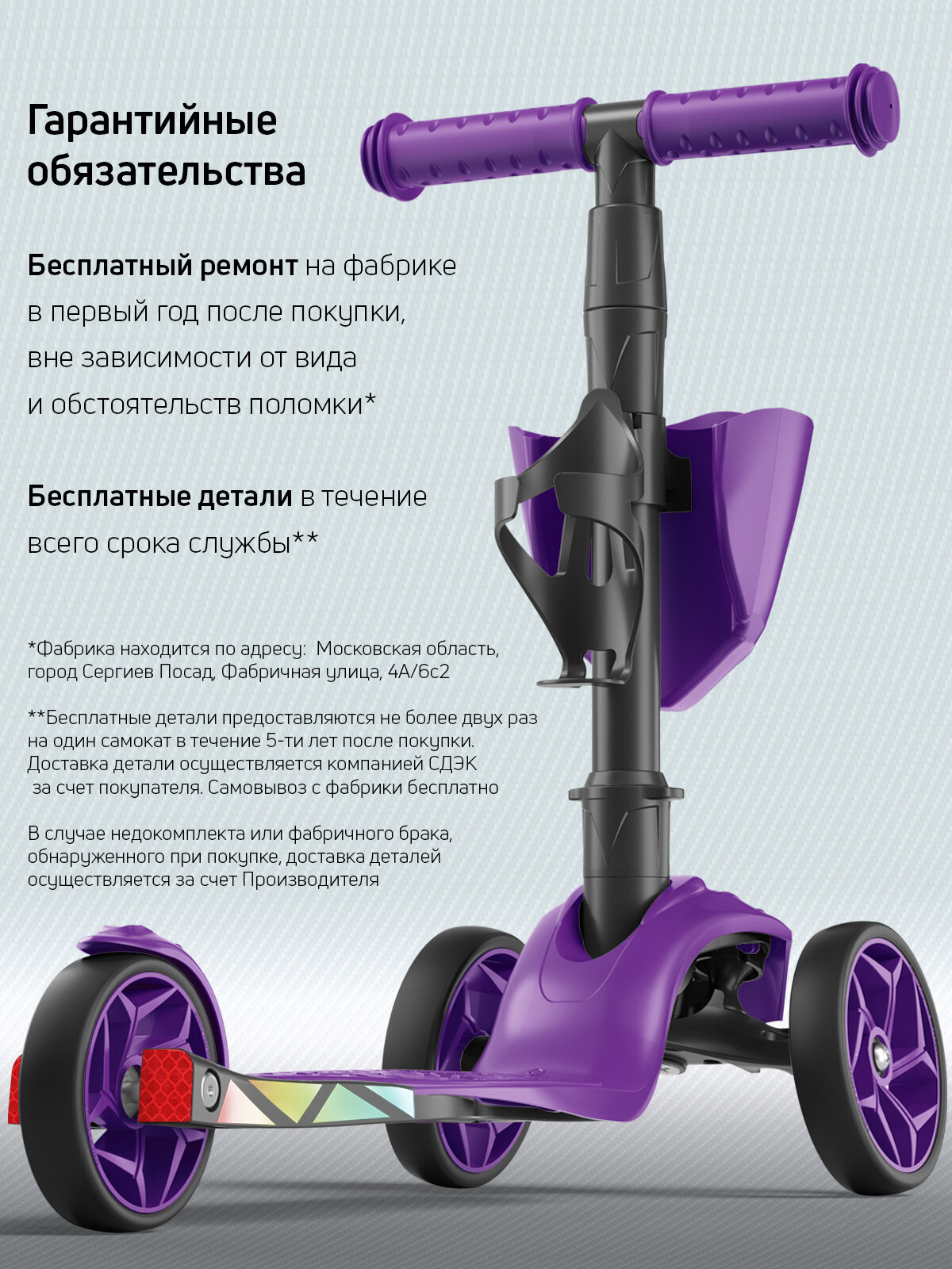 СохранитьСамокат, самокат трехколесный детский, с корзинкой и подстаканником для бутылок, Alfa Mini, фиолетовый интересное: