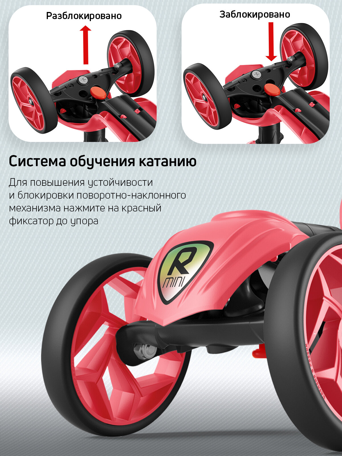 Порадовало , что можно заблокировать поворот руля. Малышке 1.3, только осваиваем самокат, так я за безопасность не переживаю Надеемся, в следующем году будут ещё со светящимся колёсами будут |