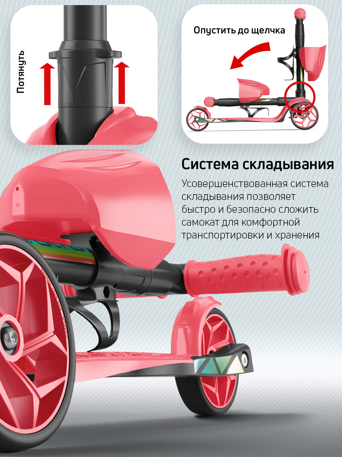 | Конструктивные особенности | регулировка высоты руля / складной |