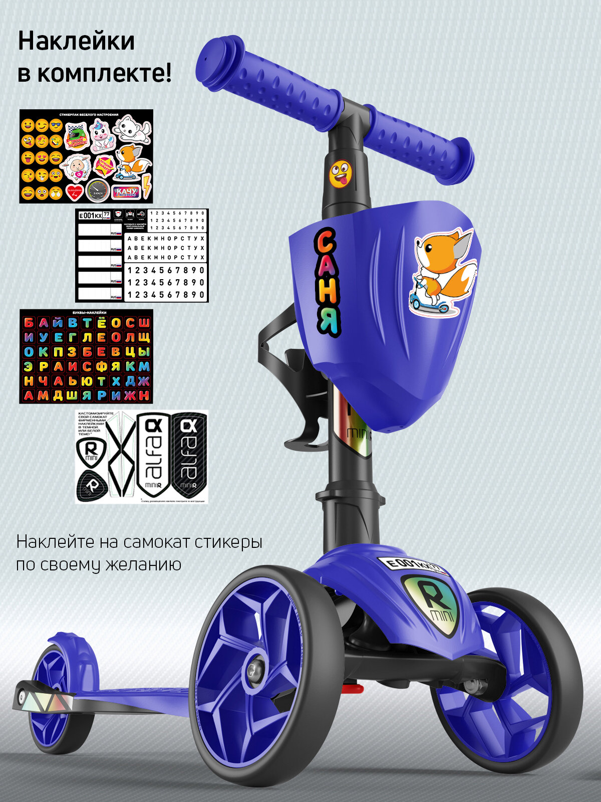 Самокат детский трехколесный с корзинкой, подстаканником для бутылок и наклейками Alfa Mini XR от Buggy Boom