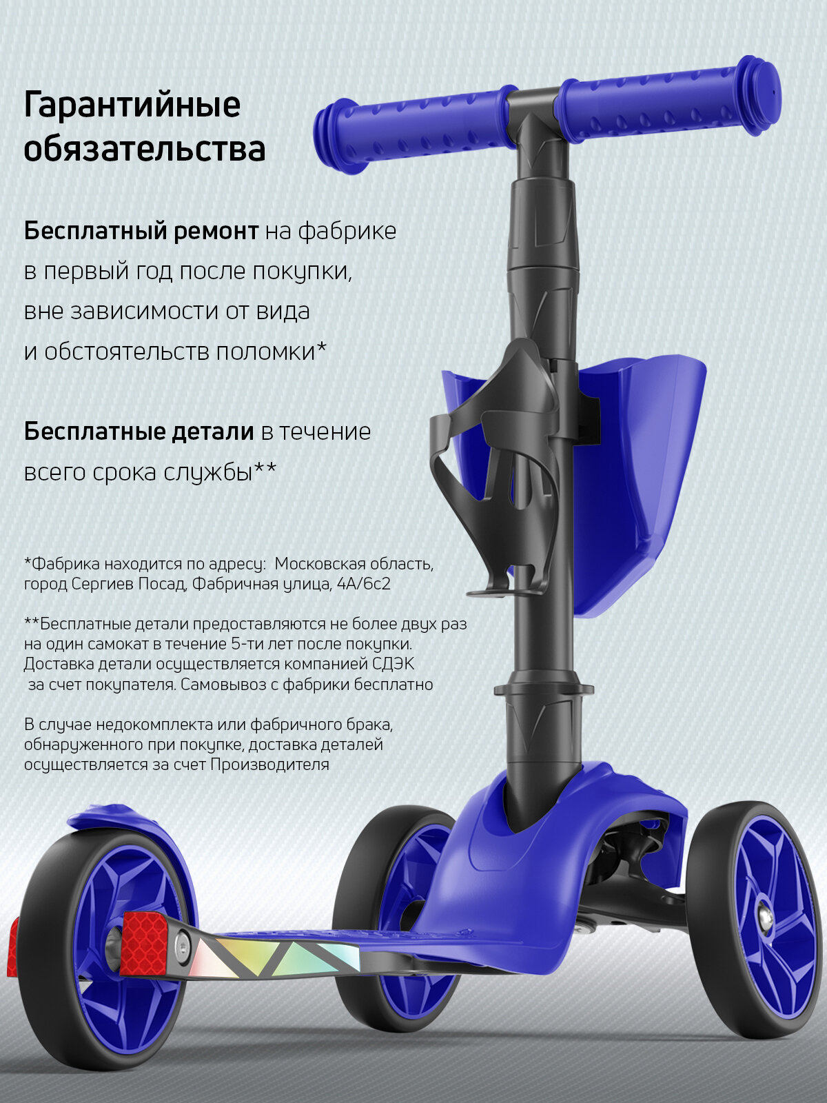 СохранитьСамокат, самокат трехколесный детский, с корзинкой и подстаканником для бутылок, Alfa Mini, синий интересное: