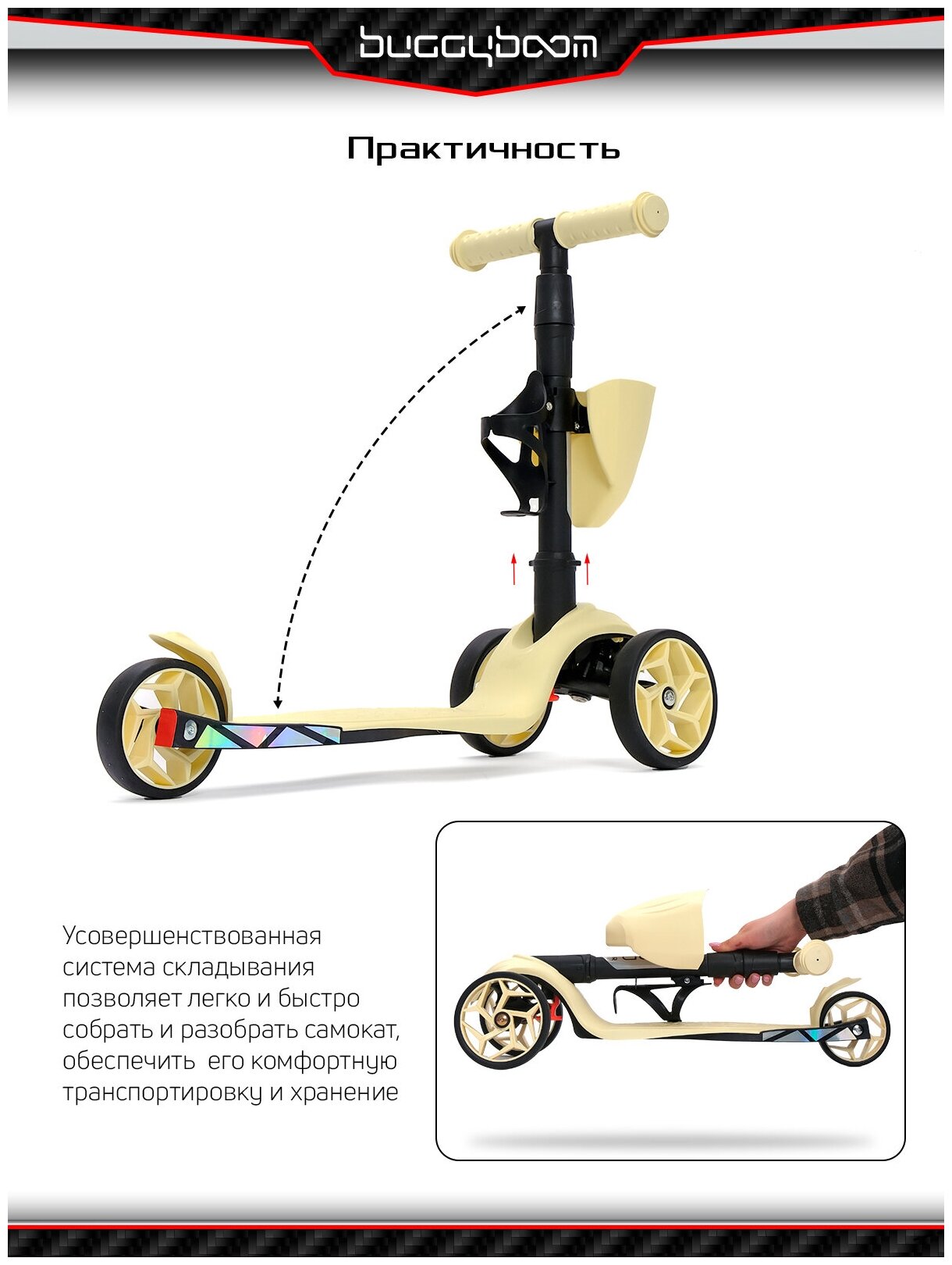 Самокат детский трехколесный с корзинкой и подстаканником для бутылок от Buggy Boom