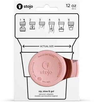 Многоразовый складной стакан STOJO с крышкой для кофе с собой из пищевого силикона,Кружка для кофе 355 мл, цвет Carnation