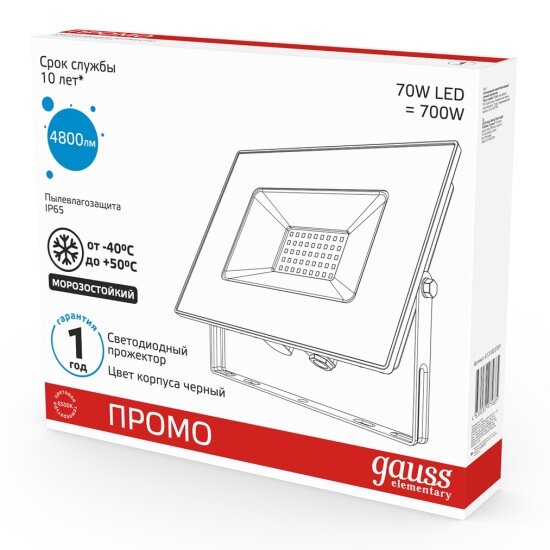 Купить Прожектор Gauss Elementary 70W 4370lm IP65 6500К черный промо 1/10