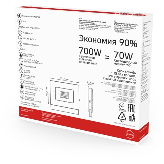 Прожектор светодиодный 70Вт 5950лм 6500К IP65 613100370P gauss