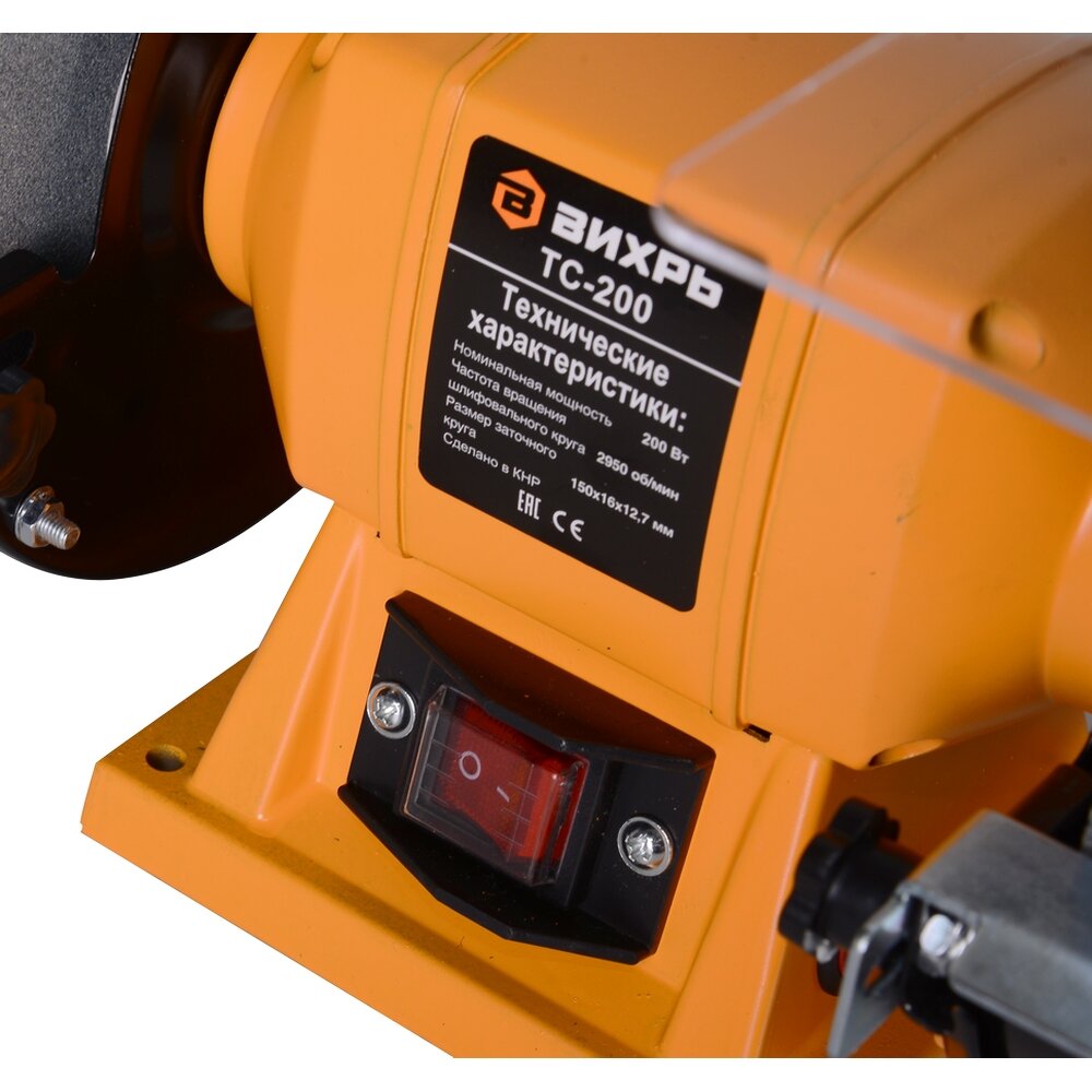 Точильный станок, 200 Вт, 2950 об/мин, круг 150х16 мм, подсветка, защитный экран, вихрь ТС-200 72/7/2